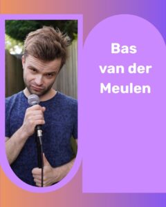 Bas van der Meulen promoveerde in 2021 aan de universiteit en dacht toen: laat ik eens wat significants doen met mijn leven. Sindsdien speelt hij regelmatig in comedyclubs en kleine theaters en heeft hij zich ontwikkeld tot een van de vaste schrijvers achter satirisch platform De Speld. Op het podium verweeft Bas op originele wijze persoonlijke verhalen met maatschappelijke thema’s. Zijn podiumpersoonlijkheid wordt door andere, bekendere comedians omschreven als ‘Weet ik veel man, ik heb je één keer zien spelen’ en ‘Jij zit toch bij De Speld, hoe kom ik daar binnen?’