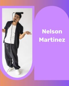 Nelson Martinez, Amsterdam, comedian/cabaretier, geboren in Eindhoven met Spaanse en Latijns-Amerikaanse roots. Na zijn studie aan de Hogere Hotelschool verhuisde hij naar Amsterdam. Hij stond eerst op het podium als salsadanser en is sinds 2022 actief als comedian. In zijn comedy gebruikt hij veel zelfspot en verhalen uit zijn biculturele achtergrond, met een charmante en open uitstraling.